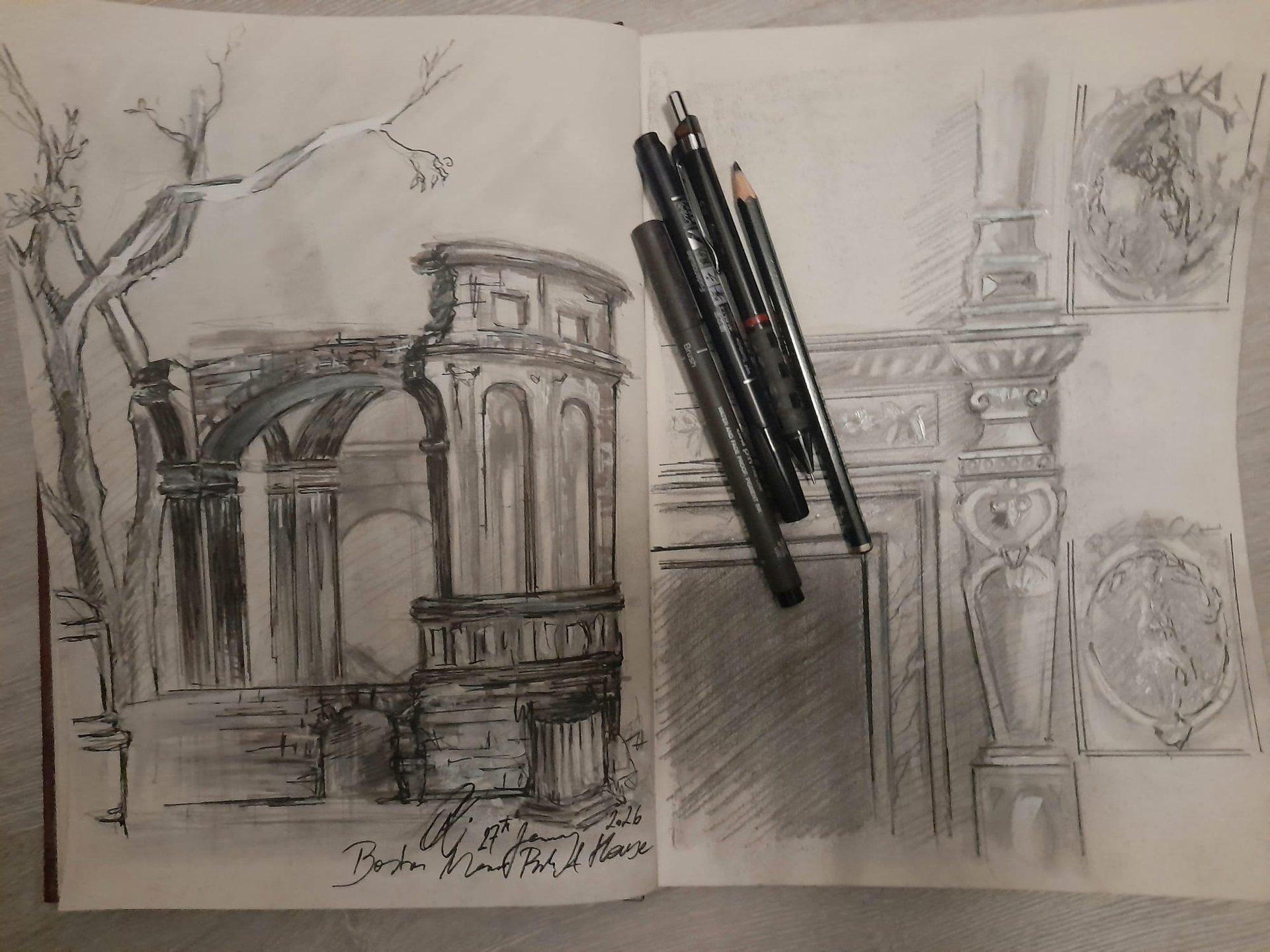 Immersed in the beauty of Chiswick House & Gardens, one of London’s most elegant historic estates. The site offers a rich mix of architecture, landscapes, and atmospheric scenes perfect for drawing, sketching, and painting. Chiswick House is a Palladian masterpiece, and its geometry is a gift for artists. The gardens are full of sweeping vistas and intimate corners. The sculptures and stonework Great for tonal drawing, charcoal, and close‑up studies. In the garden, you can find the Sphinxes, an Obelisk, urns, and classical statuary.